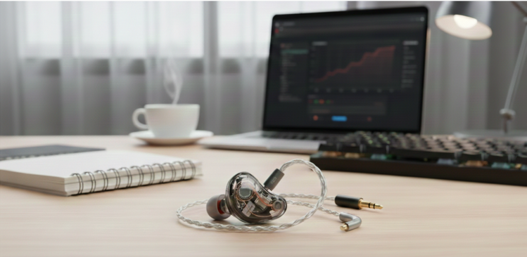 Esse fone é o queridinho dos audiófilos iniciantes. Ele é um fone “in-ear” de retorno, usado por músicos, mas que caiu no gosto de quem trabalha em Home Office.